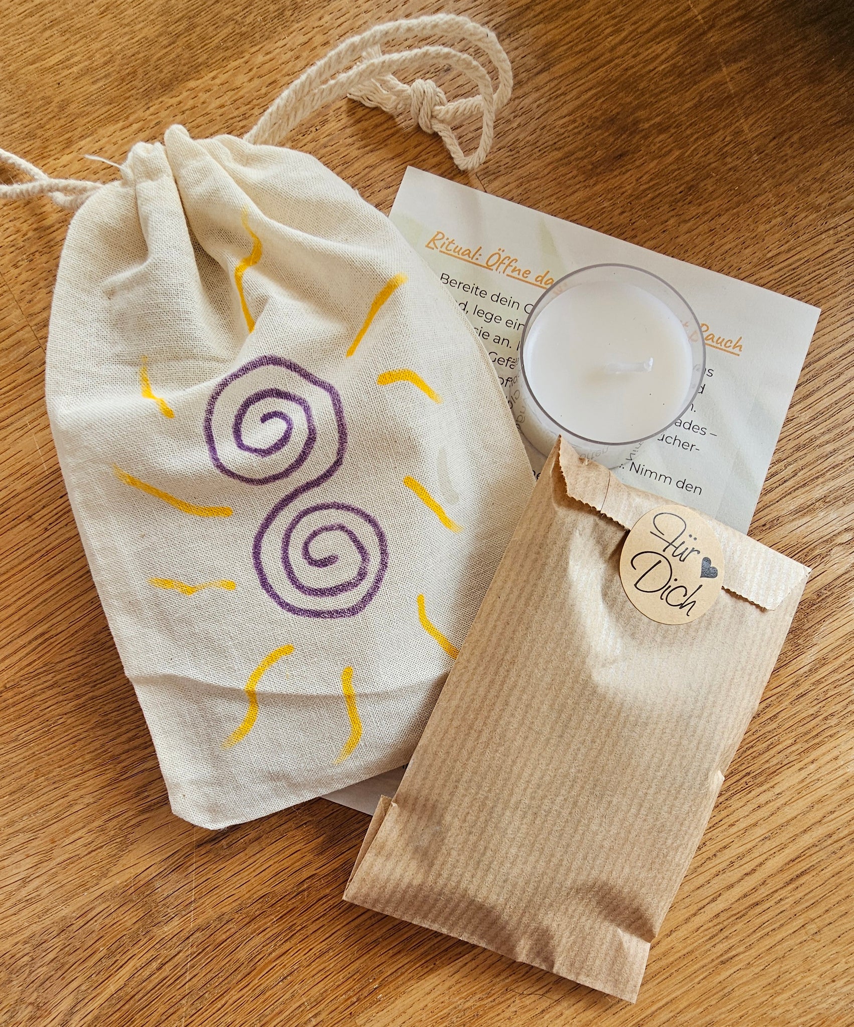 Das A6-Ritualkärtchen enthält eine einfache, kraftvolle Anleitung, wie du die Räuchermischung im Medizinrad nutzen kannst – auch für Einsteigerinnen geeignet.