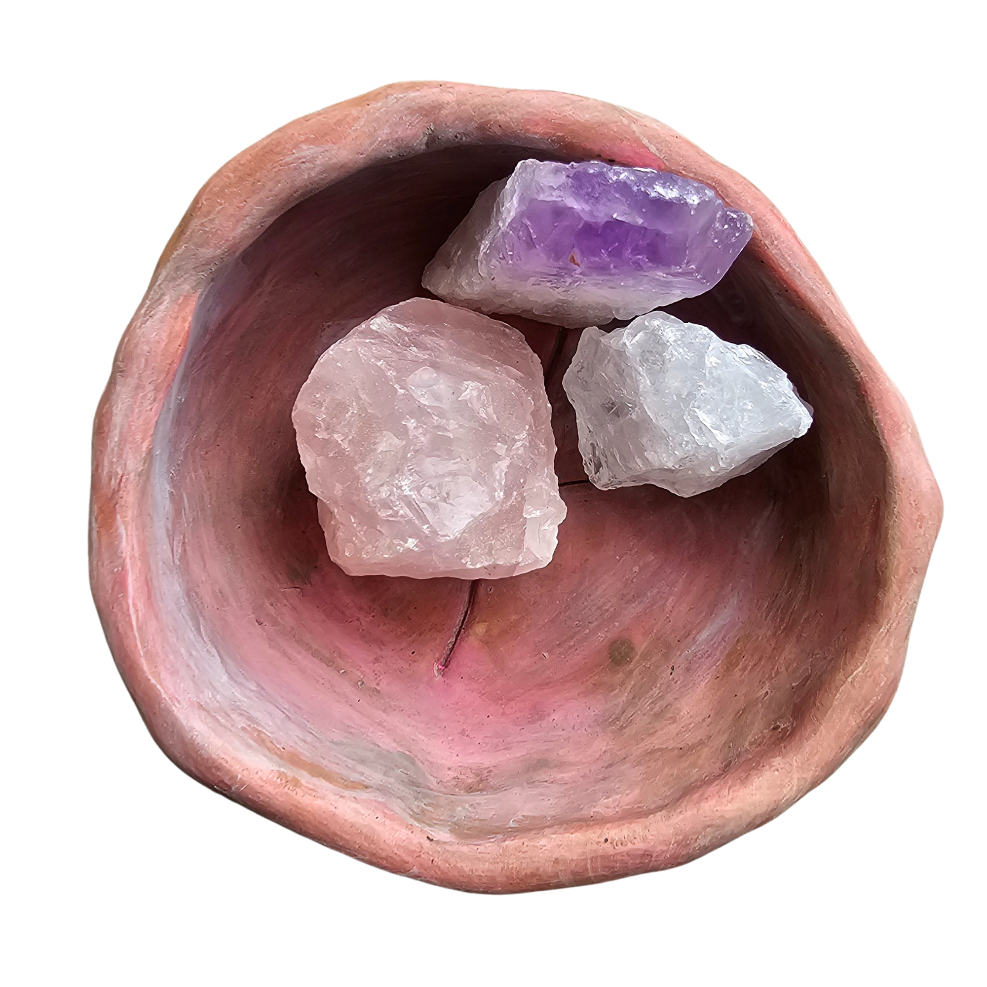 Lege die drei Steine in die Schale – sie wirken gemeinsam und schaffen ein sanftes Feld aus Klarheit, Liebe und Balance.