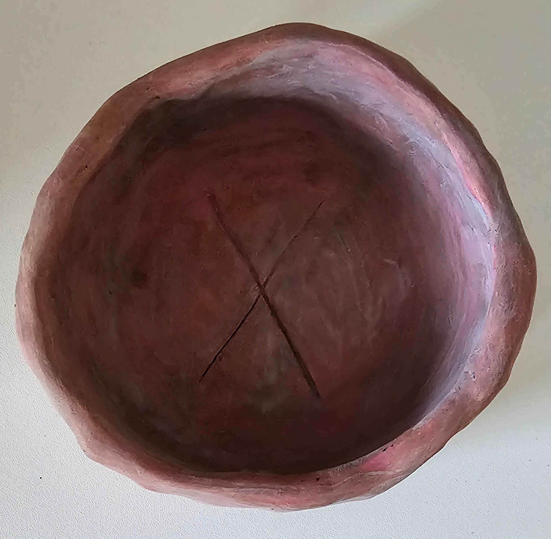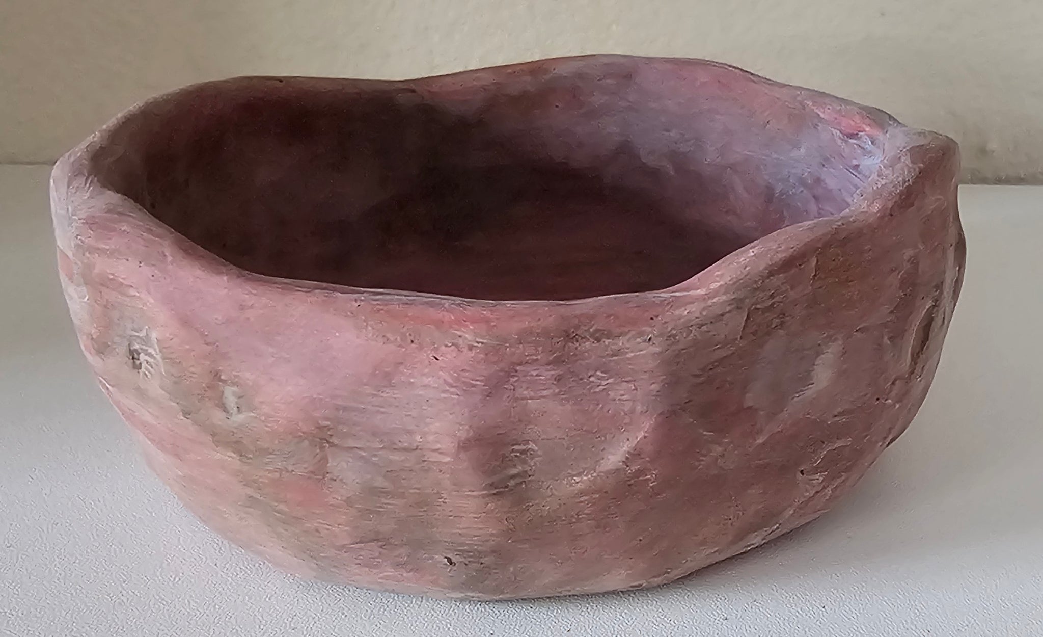 Ich habe sie komplett von Hand geformt, getrocknet, geschliffen, bemalt und versiegelt. Jeder Arbeitsschritt ist langsam, bewusst und in Ruhe entstanden – so wie es eine Schale braucht, die die Energien in Räumen harmonisieren soll. Währenddessen liefen Frequenzen im Hintergrund mit 528Hz und weitere.